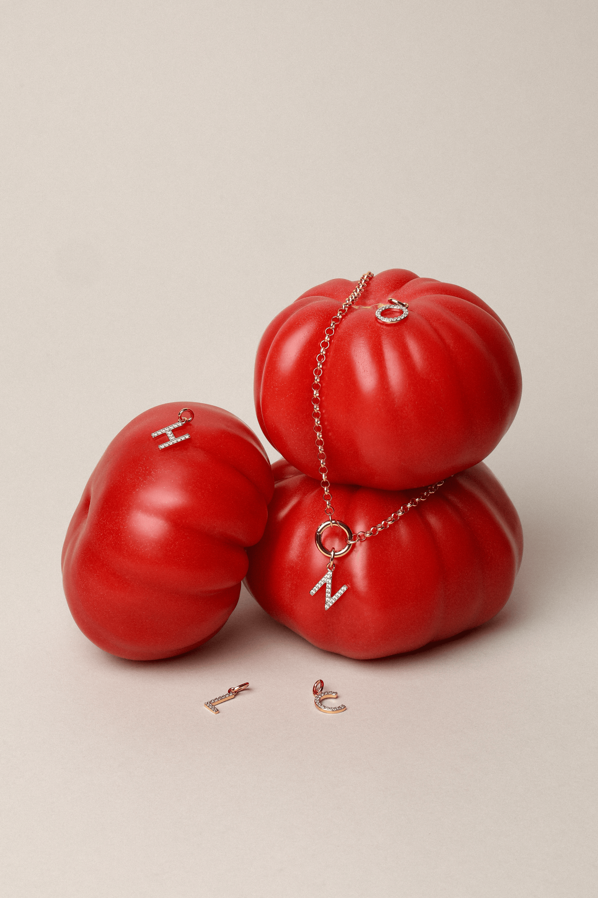 The simplified lettering and stadium bail bring letter charms into the current decade.